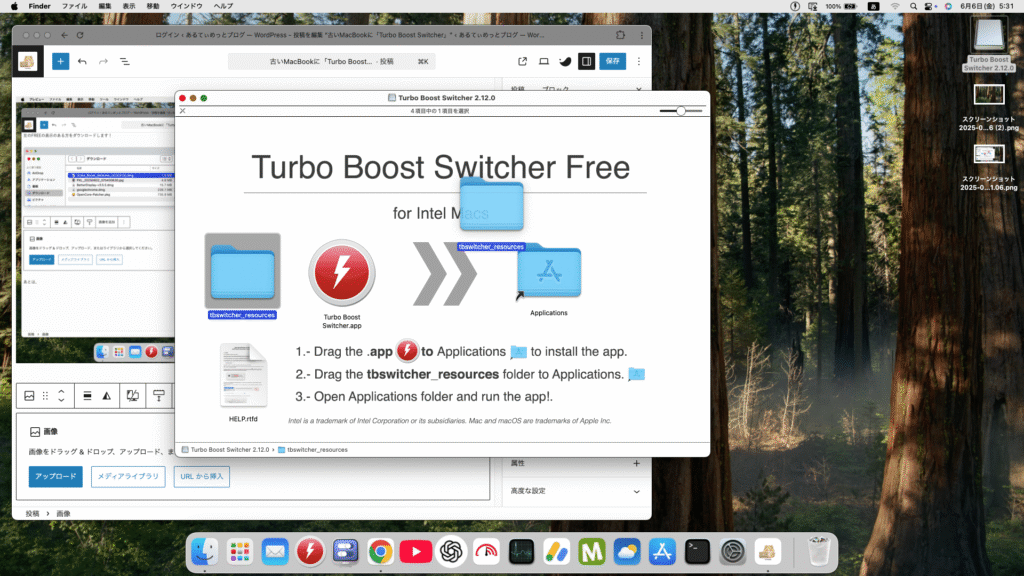 MacBookをONにしたら、このTurbo Boost Switcherも
